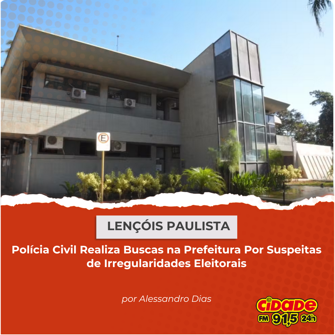 Geral LENÇÓIS PAULISTA: Polícia Civil Realiza Buscas na Prefeitura Por Suspeita de Irregularidades Eleitorais 10 de janeiro de 2025 Nenhum comentário