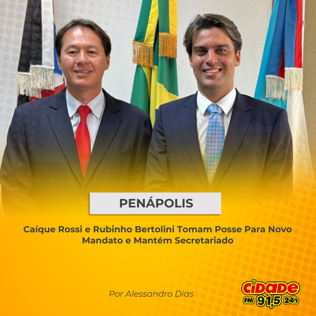 Geral PENÁPOLIS: Caíque Rossi e Rubinho Bertolini Tomam Posse Para Novo Mandato e Mantém Secretariado 2 de janeiro de 2025 Nenhum comentário