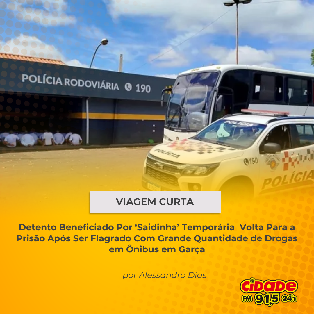 Geral VIAGEM CURTA: Detento Beneficiado Por ‘Saidinha’ Volta Para a Prisão Após Ser Flagrado Com Grande Quantidade de Drogas em Ônibus em Garça 26 de dezembro de 2024 Nenhum comentário