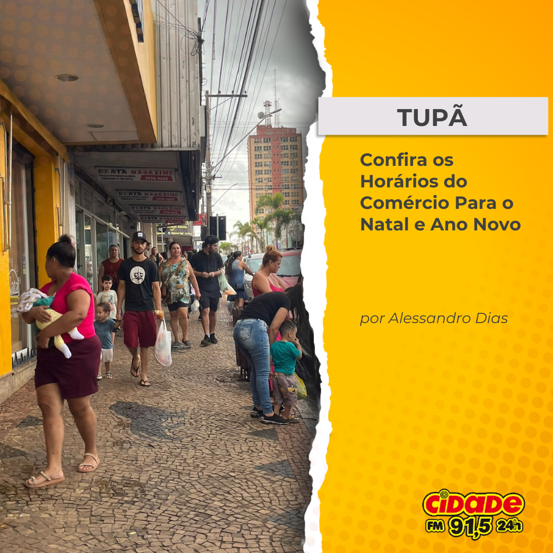 Geral TUPÃ: Confira os Horários do Comércio Para o Natal e Ano Novo 21 de dezembro de 2024 Nenhum comentário