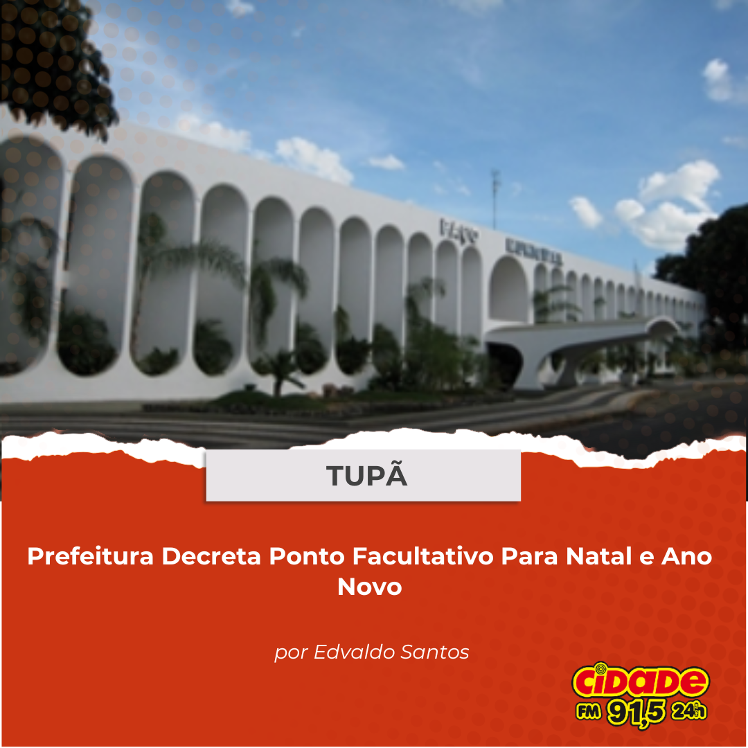 Geral TUPÃ: Prefeitura Decreta Ponto Facultativo Para Natal e Ano Novo 20 de dezembro de 2024 Nenhum comentário