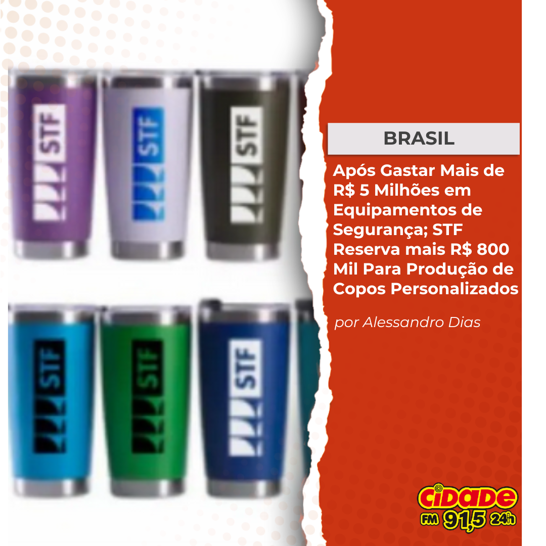 Geral BRASIL: Após de Gastar R$ 5 Milhões em Equipamentos de Segurança; STF Reserva mais R$ 800 Mil para Produção de Copos Personalizados 17 de dezembro de 2024 Nenhum comentário