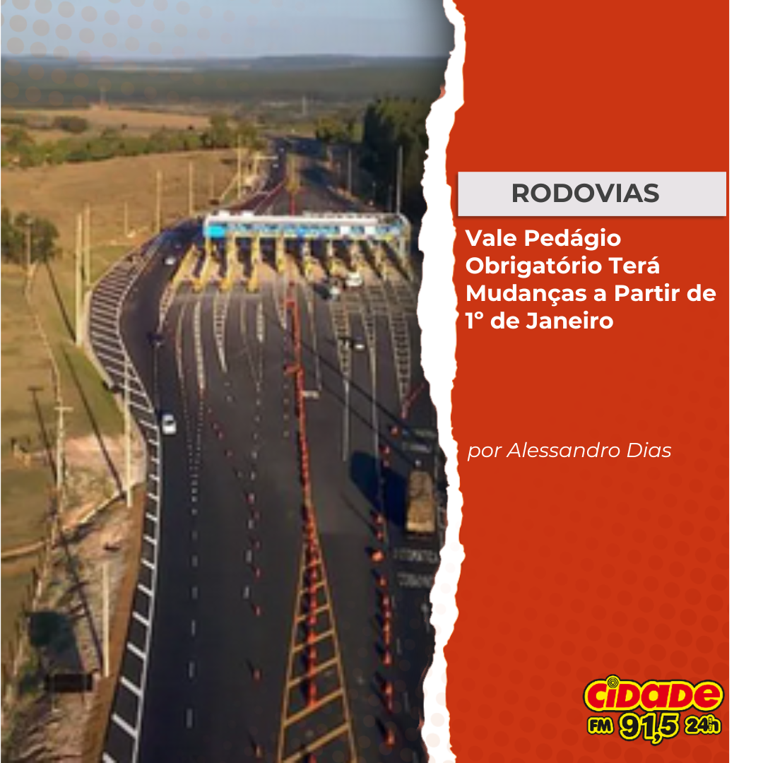 Geral RODOVIAS: Vale Pedágio Obrigatório Terá Mudanças a Partir de 1º de Janeiro 17 de dezembro de 2024 Nenhum comentário