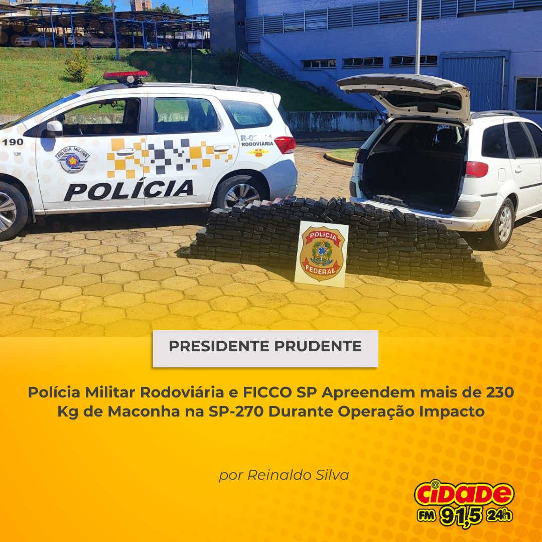 Geral PRESIDENTE PRUDENTE: Polícia Militar Rodoviária e FICCO SP Apreende mais de 230 Kg de Maconha na SP-270 Durante Operação Impacto 16 de dezembro de 2024 Nenhum comentário