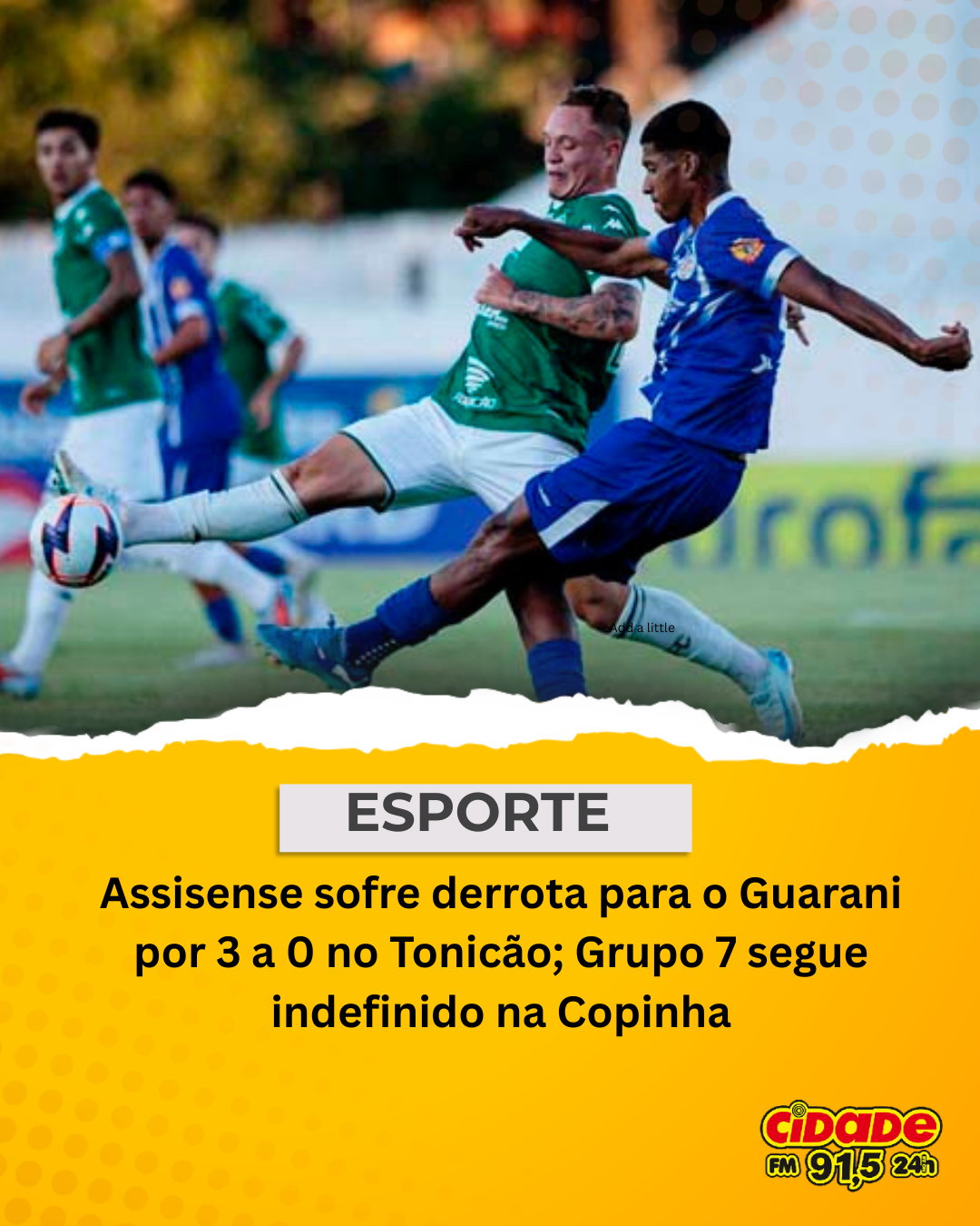 Geral ESPORTE: Assisense sofre derrota para o Guarani por 3 a 0 no Tonicão; Grupo 7 segue indefinido na Copinha 7 de janeiro de 2026 Nenhum comentário