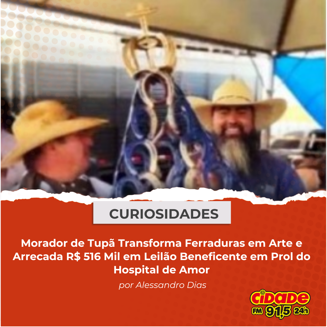 Geral CURIOSIDADES: Morador de Tupã Transforma Ferraduras em Arte e arrecada R$ 516 Mil em Leilão Beneficente em Prol do Hospital de Amor 2 de dezembro de 2024 Nenhum comentário