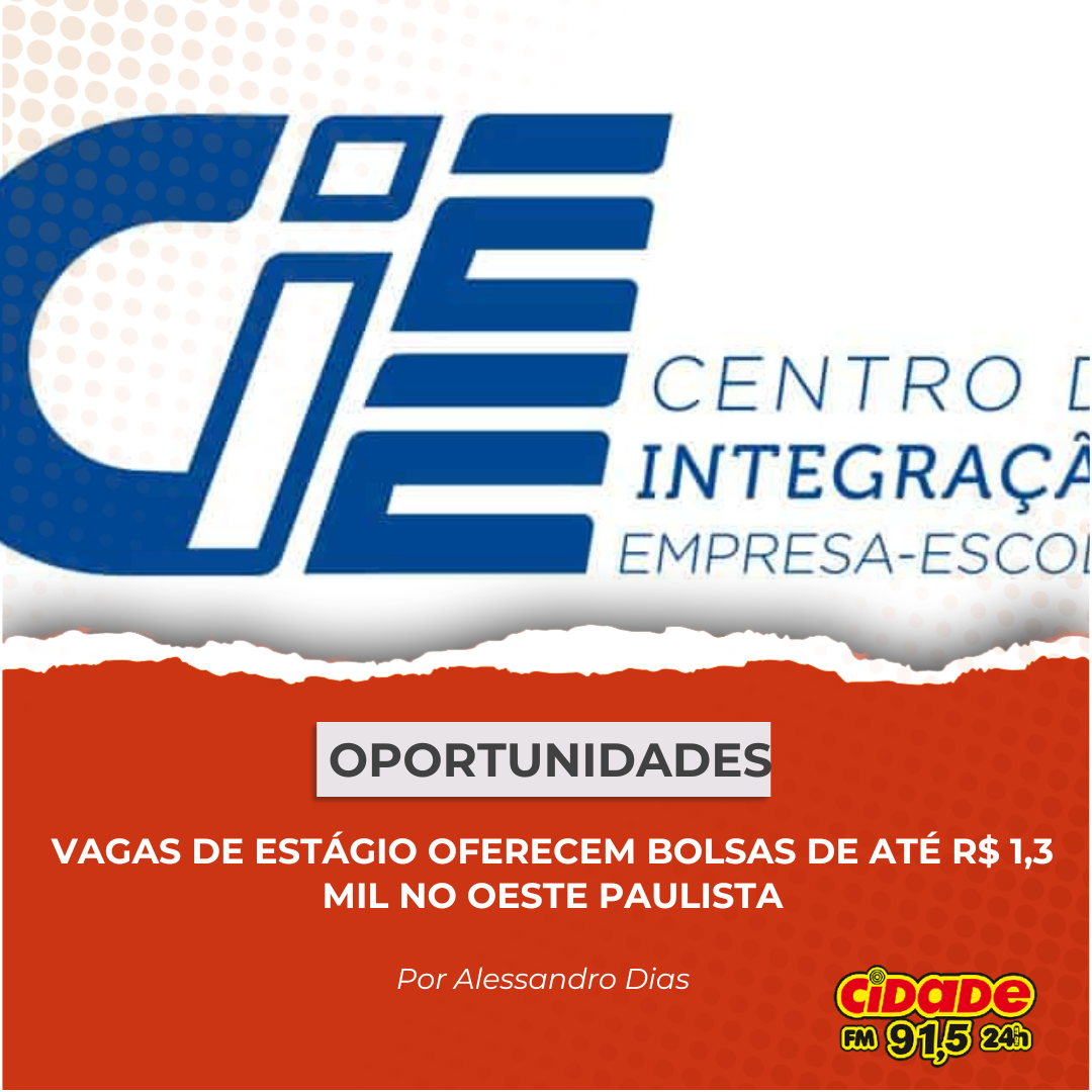 Geral OPORTUNIDADES: VAGAS DE ESTÁGIO OFERECEM BOLSAS DE ATÉ R$ 1,3 MIL NO OESTE PAULISTA 13 de outubro de 2024 Nenhum comentário
