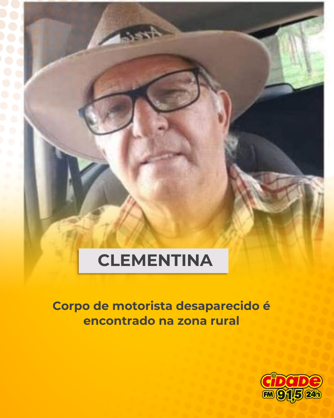 Geral CLEMENTINA: Corpo de motorista desaparecido é encontrado na zona rural 4 de janeiro de 2026 Nenhum comentário