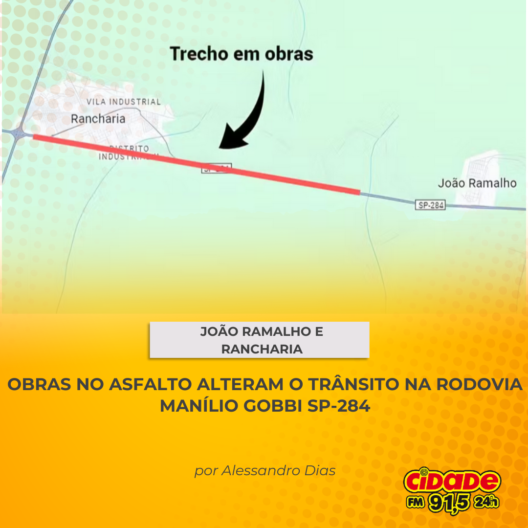 Geral JOÃO RAMALHO E RANCHARIA: OBRAS NO ASFALTO ALTERAM TRÂNSITO NA RODOVIA MANÍLIO GOBBI SP-284 8 de setembro de 2024 Nenhum comentário