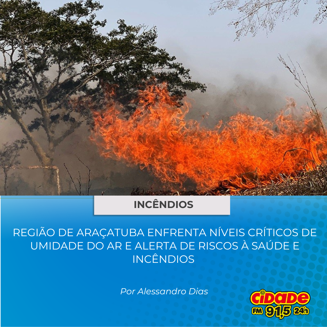Geral INCÊNDIOS: REGIÃO DE ARAÇATUBA ENFRENTA NÍVEIS CRÍTICOS DE UMIDADE DO AR E ALERTA DE RISCO À SAÚDE E INCÊNDIOS 4 de setembro de 2024 Nenhum comentário