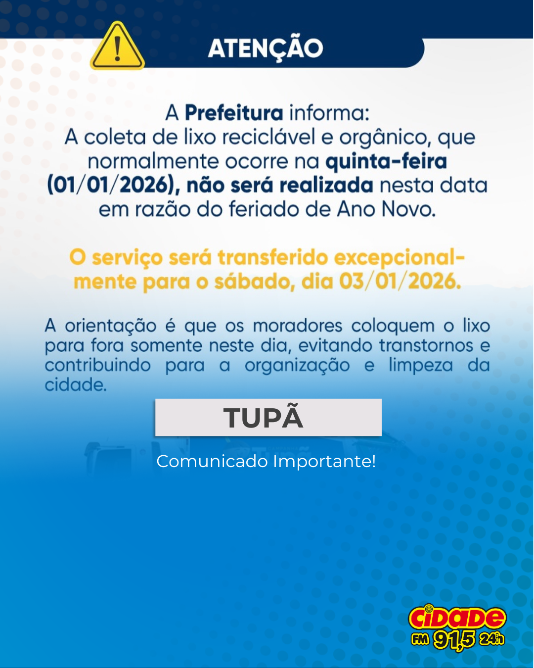 Geral QUATÁ: Acompanhe a nossa programação de Ano Novo, e com proibição de soltar fogos de artifício! 31 de dezembro de 2025 Nenhum comentário