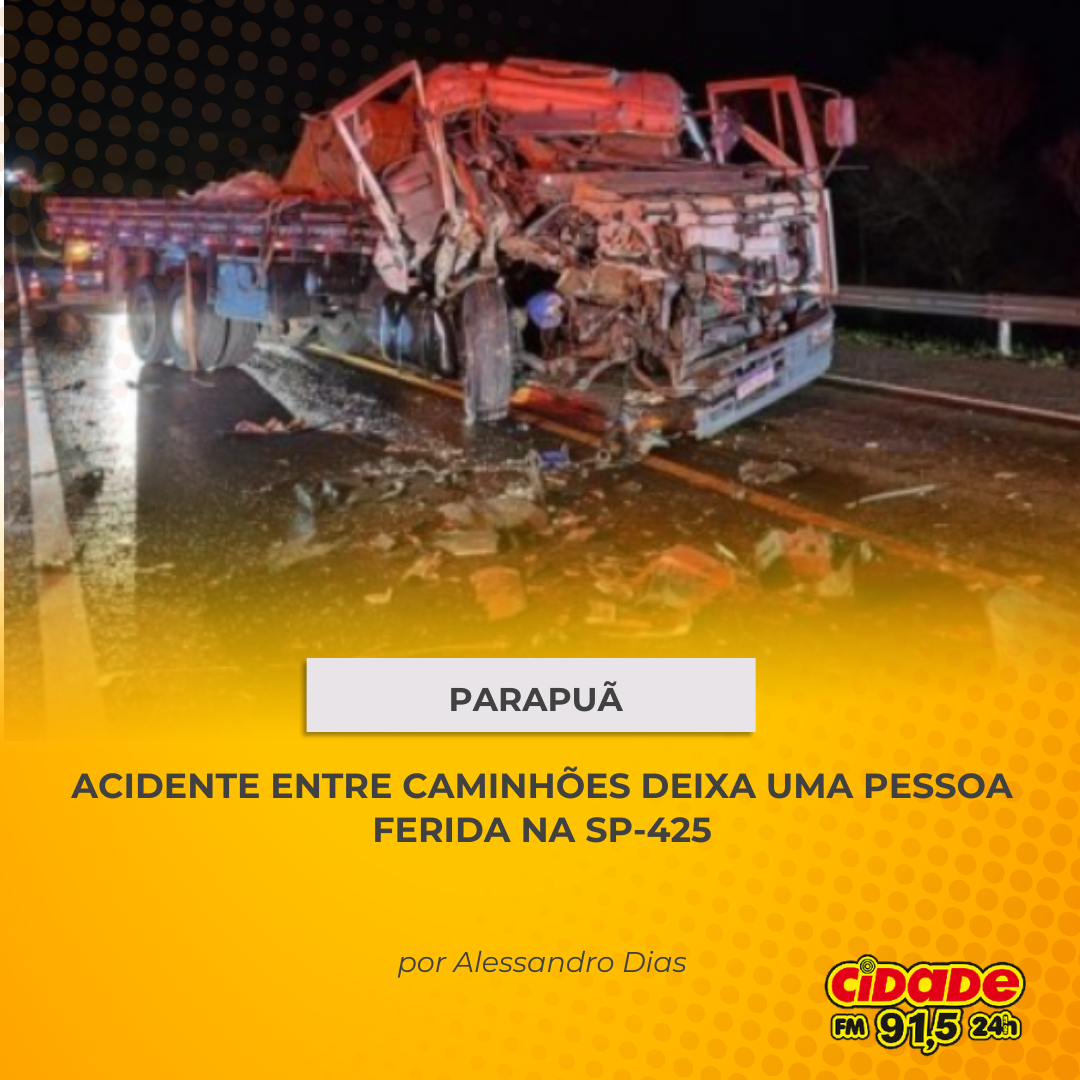 Geral PARAPUÃ: ACIDENTE ENTRE CAMINHÕES DEIXA UMA PESSOA FERIDA NA SP-425 27 de agosto de 2024 Nenhum comentário