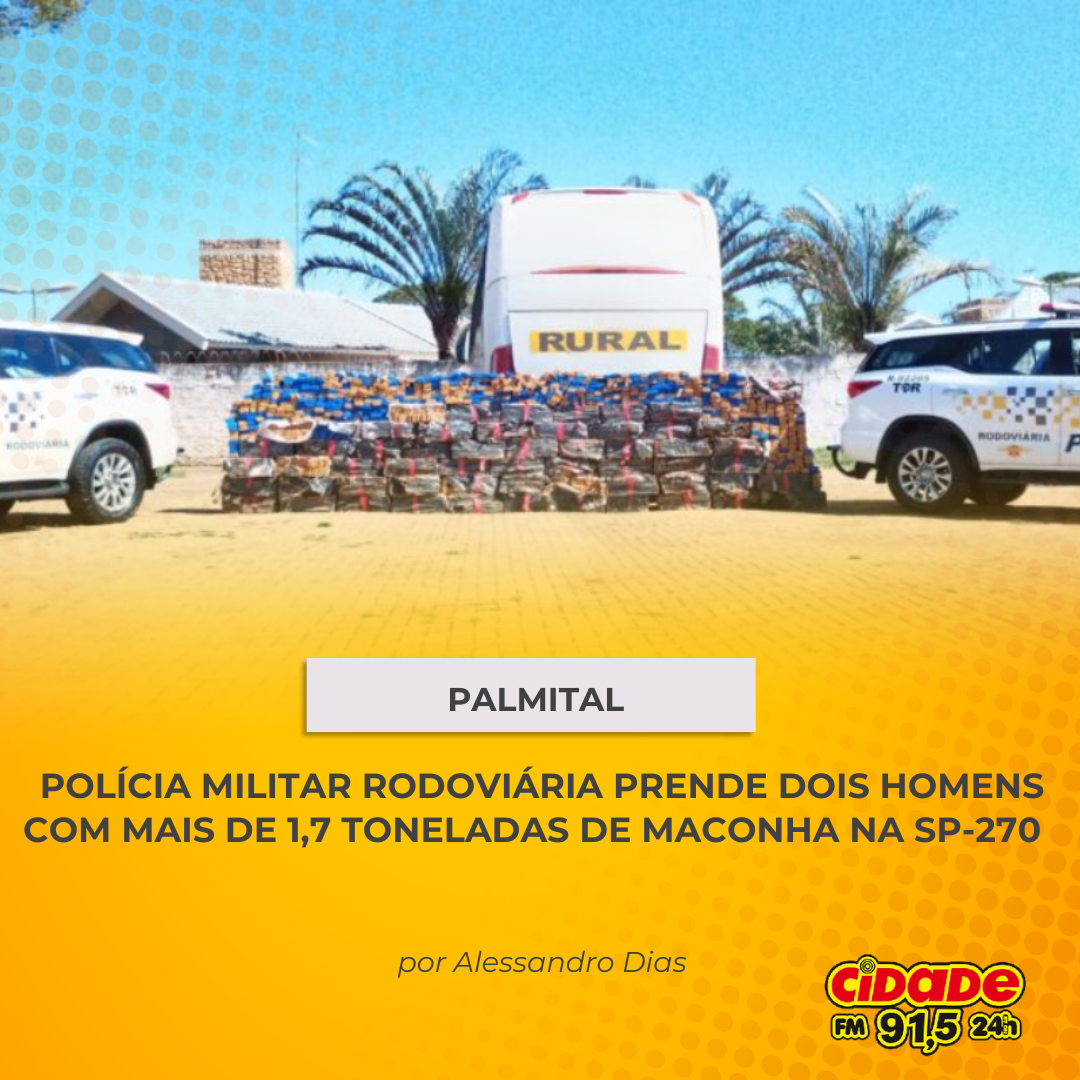 Geral PALMITAL: POLÍCIA MILITAR RODOVIÁRIA PRENDE DOIS HOMENS COM MAIS DE 1,7 TONELADA DE MACONHA NA SP-270 27 de agosto de 2024 Nenhum comentário