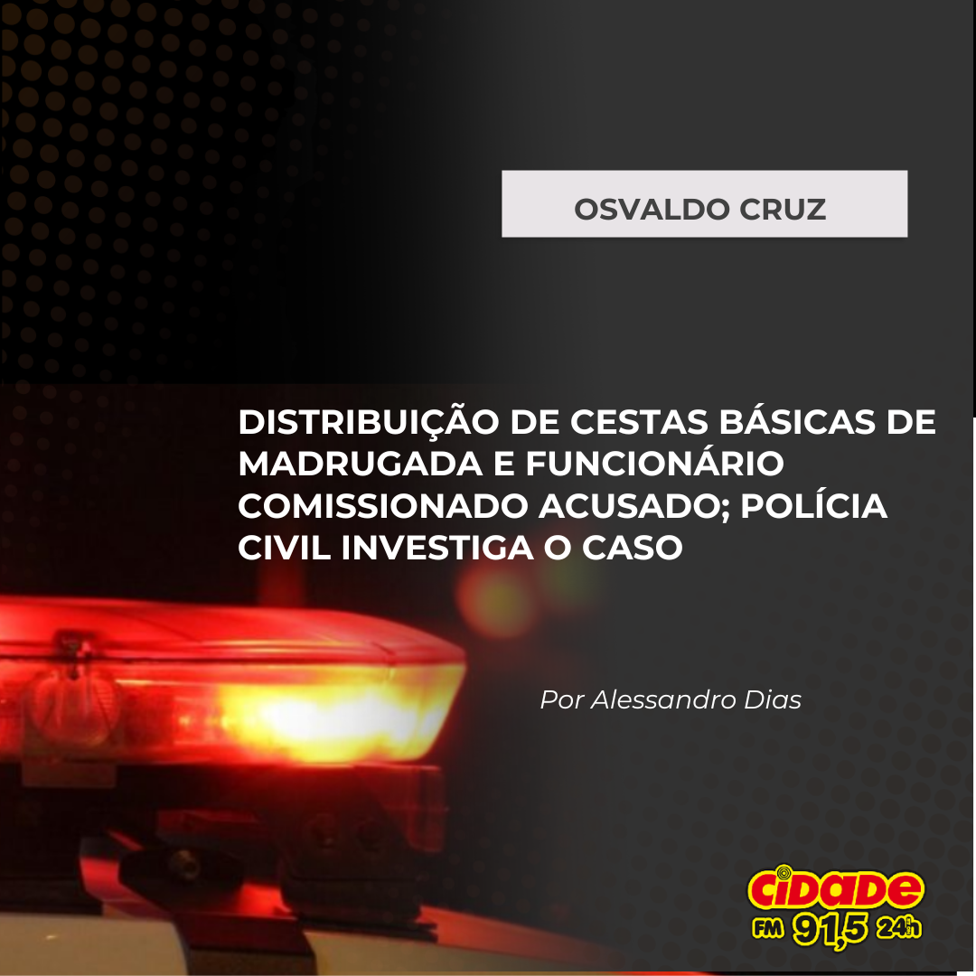 Geral OSVALDO CRUZ: DISTRIBUIÇÃO DE CESTAS BÁSICAS DURANTE MADRUGADA E FUNCIONÁRIO COMISSIONADO ACUSADO; POLÍCIA CIVIL INVESTIGA O CASO 26 de agosto de 2024 Nenhum comentário