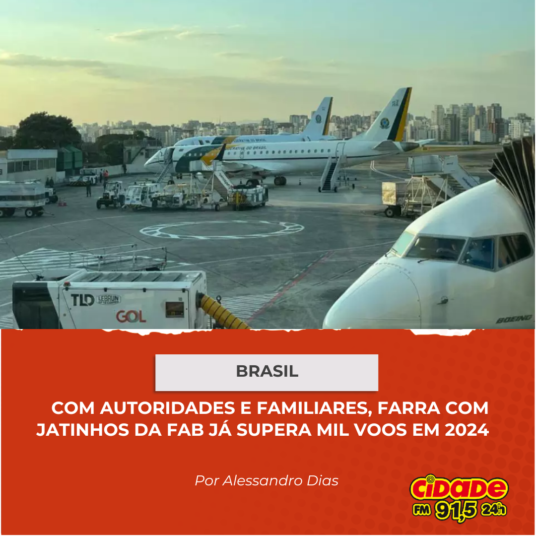 Geral BRASIL: COM AUTORIDADES E FAMILIARES, FARRA COM JATINHOS DA FAB JÁ SUPERA MIL VOOS EM 2024 23 de agosto de 2024 Nenhum comentário