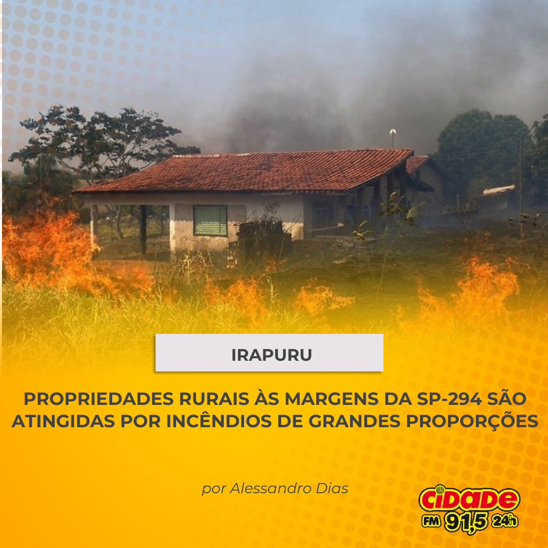 Geral IRAPURU: PROPRIEDADES RURAIS ÀS MARGENS DA SP-294 SÃO ATINGIDAS POR INCÊNDIO DE GRANDES PROPORÇÕES 23 de agosto de 2024 Nenhum comentário