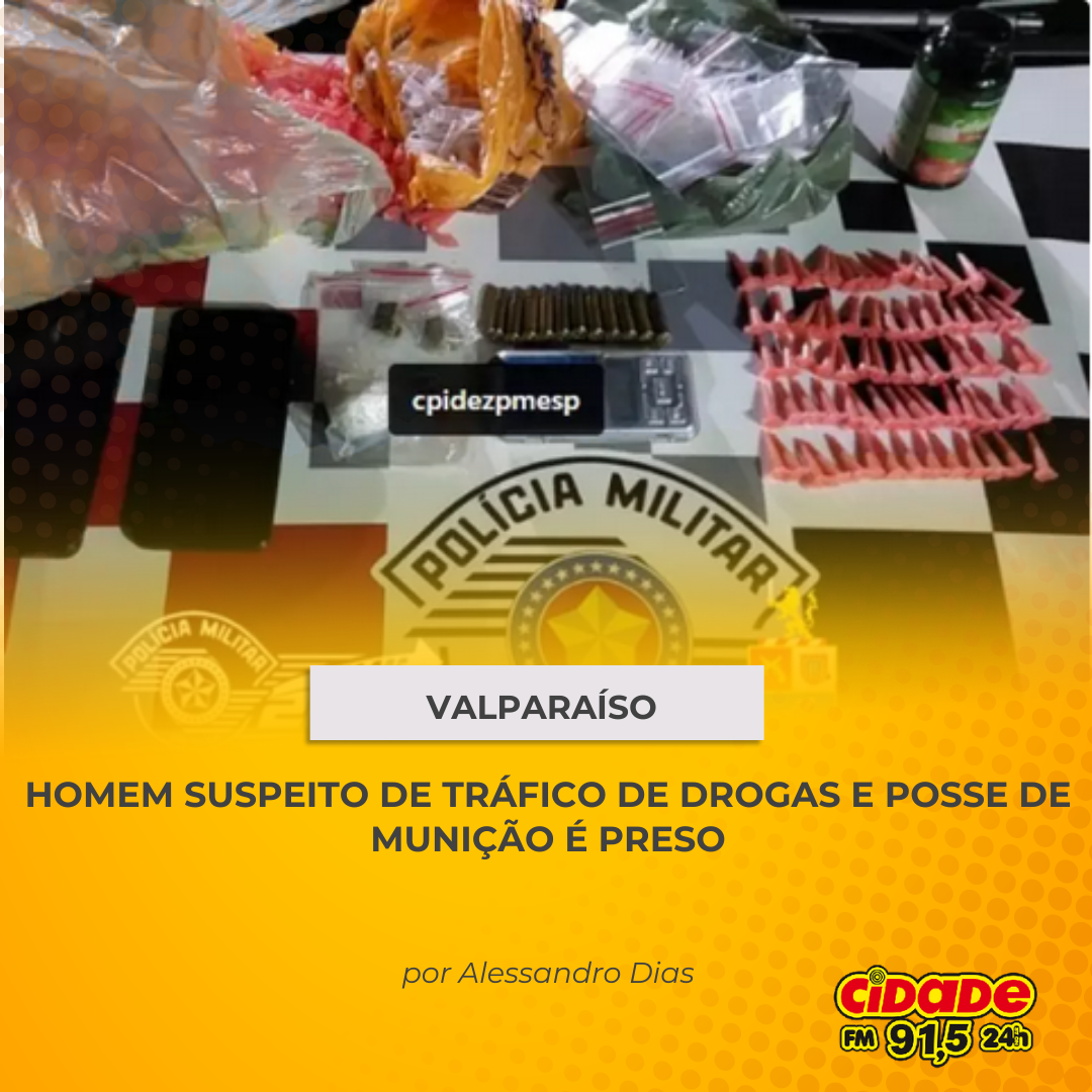 Geral VALPARAÍSO: HOMEM SUSPEITO DE TRÁFICO DE DROGAS E POSSE DE MUNIÇÃO É PRESO 23 de agosto de 2024 Nenhum comentário