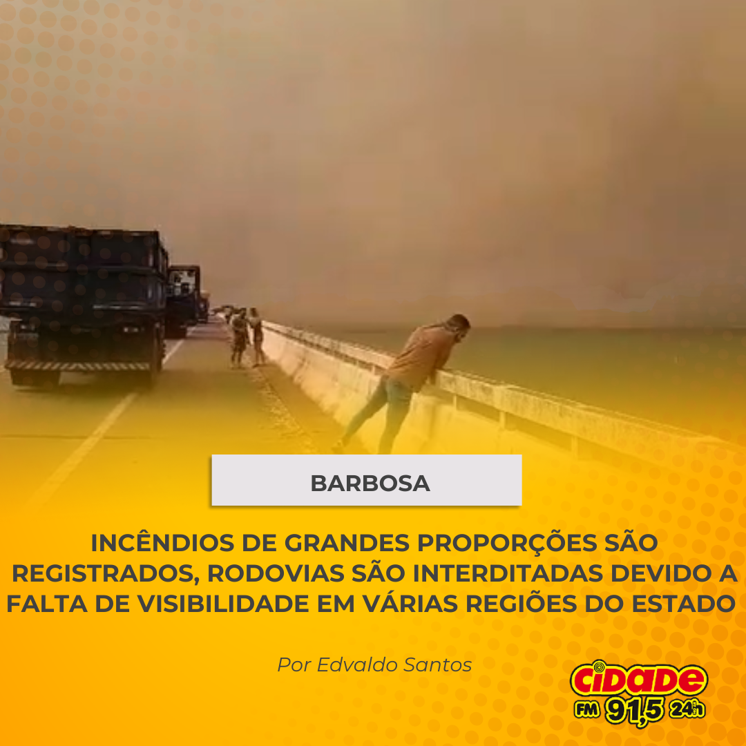 Geral BARBOSA: INCÊNDIOS DE GRANDES PROPORÇÕES SÃO REGISTRADOS, RODOVIAS INTERDITADAS DEVIDO A FALTA DE VISIBILIDADE EM VÁRIAS REGIÕES DO ESTADO 23 de agosto de 2024 Nenhum comentário