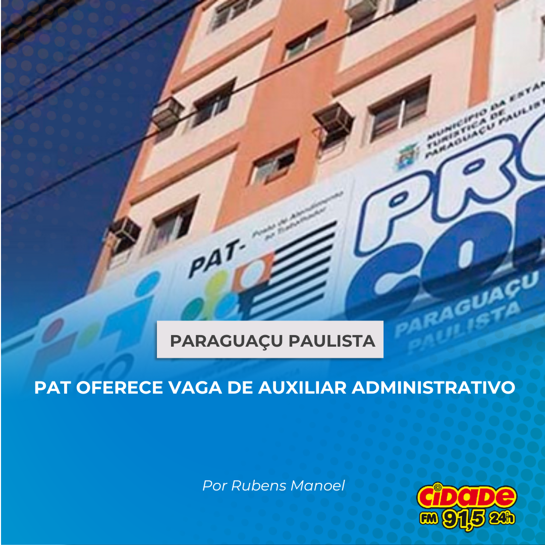 Geral PARAGUAÇU PAULISTA: PAT OFERECE VAGA DE AUXILIAR ADMINISTRATIVO 21 de agosto de 2024 Nenhum comentário