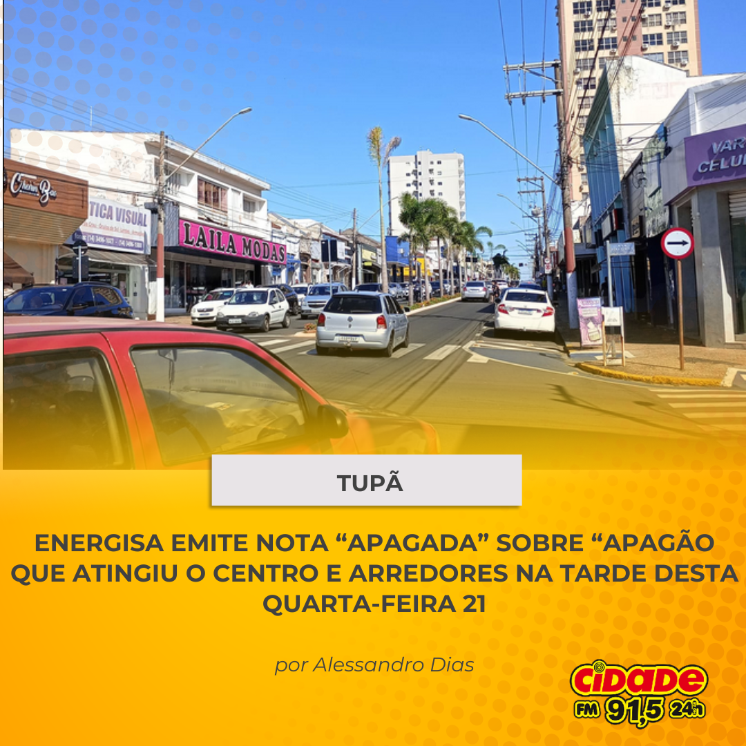 Geral TUPÃ: ENERGISA EMITE NOTA “APAGADA” SOBRE “APAGÃO QUE ATINGIU O CENTRO E PROXIMIDADES NA TARDE DESTA QUARTA-FEIRA 21 21 de agosto de 2024 Nenhum comentário