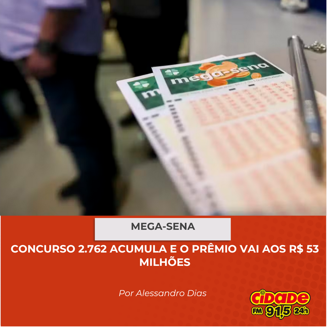 Geral MEGA-SENA: CONCURSO 2.762 ACUMULA E O PRÊMIO VAI A R$ 55 MILHÕES 16 de agosto de 2024 Nenhum comentário