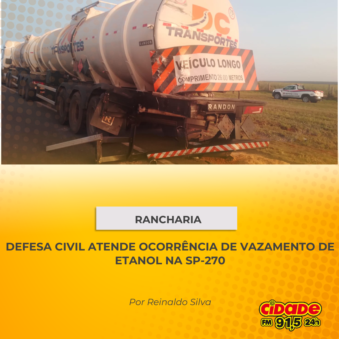 Geral RANCHARIA: DEFESA CIVIL ATENDE OCORRÊNCIA DE VAZAMENTO DE ETANOL NA SP-270 15 de agosto de 2024 Nenhum comentário