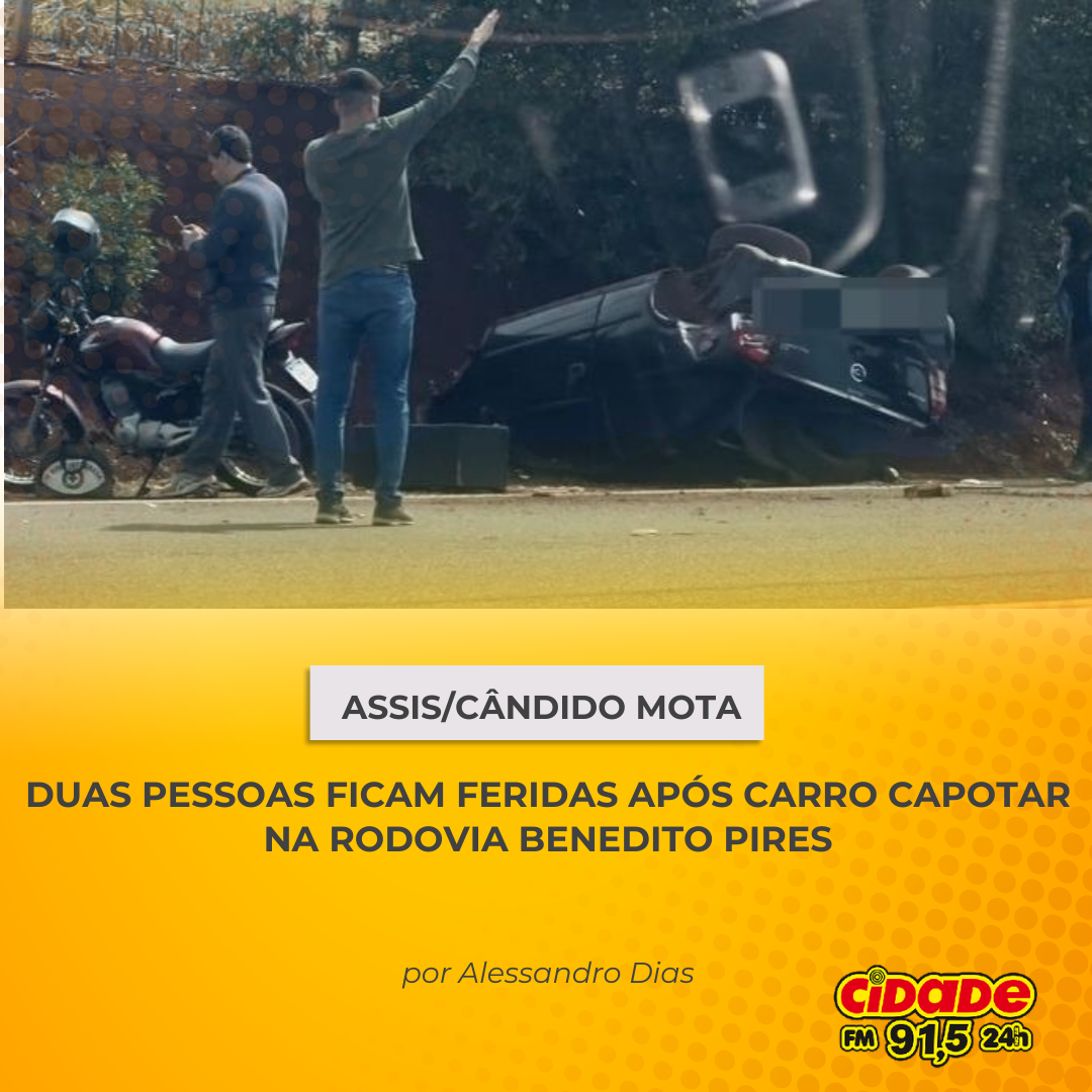 Geral ASSIS/CÂNDIDO MOTA: DUAS PESSOAS FICAM FERIDAS APÓS CARRO CAPOTAR NA RODOVIA BENEDITO PIRES 12 de agosto de 2024 Nenhum comentário