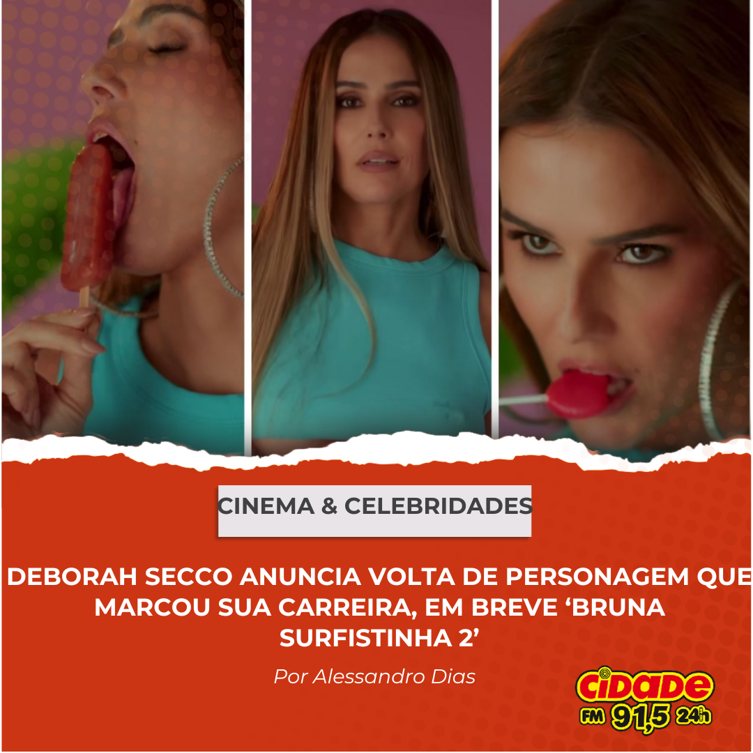 Geral CINEMA & CELEBRIDADES: DEBORAH SECCO ANUNCIA A VOLTA DA PERSONAGEM QUE MARCOU SUA CARREIRA, EM BREVE ‘BRUNA SURFISTINHA 2’ 1 de agosto de 2024 Nenhum comentário