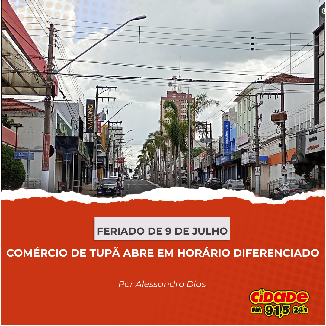 Geral FERIADO DE 09 DE JULHO: COMÉRCIO DE TUPÃ ABRE EM HORÁRIO DIFERENCIADO 6 de julho de 2024 Nenhum comentário