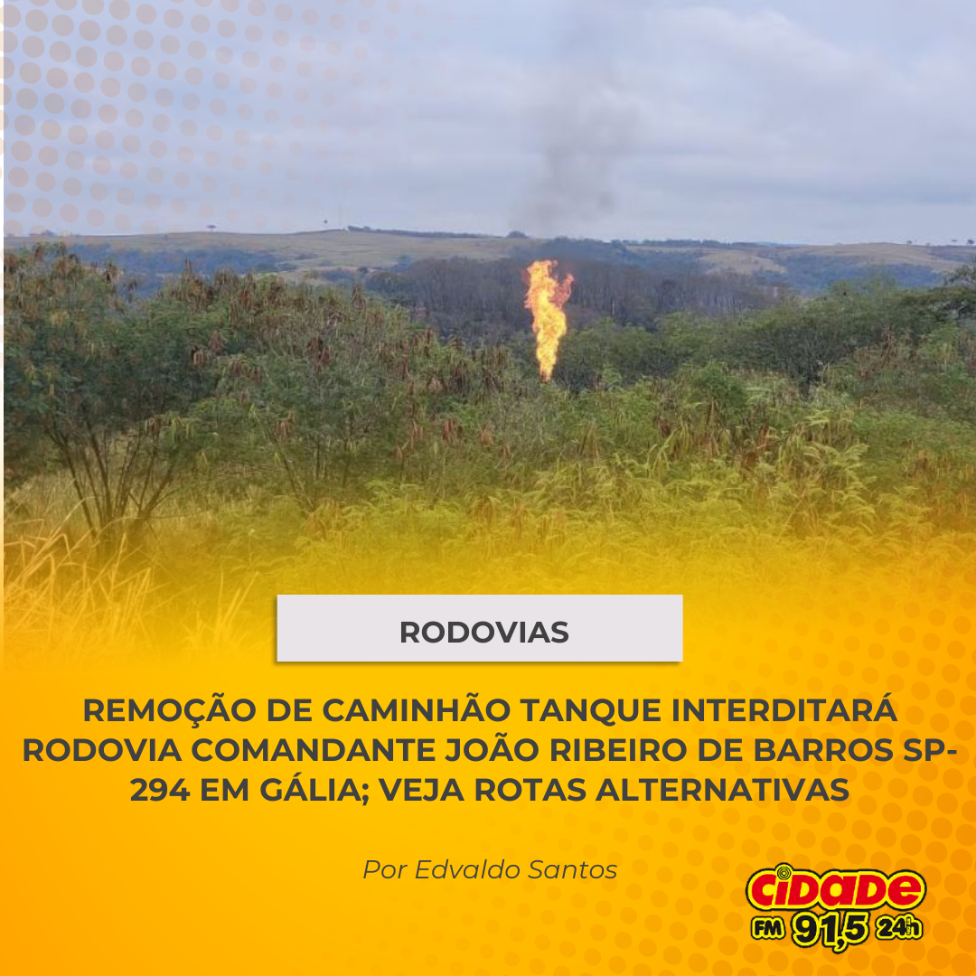 Geral RODOVIAS: REMOÇÃO DE CAMINHÃO TANQUE INTERDITARÁ PISTA OESTE DA RODOVIA COMANDANTE JOÃO RIBEIRO DE BARROS SP-294 EM GÁLIA; VEJA ROTAS ALTERNATIVAS 6 de julho de 2024 Nenhum comentário