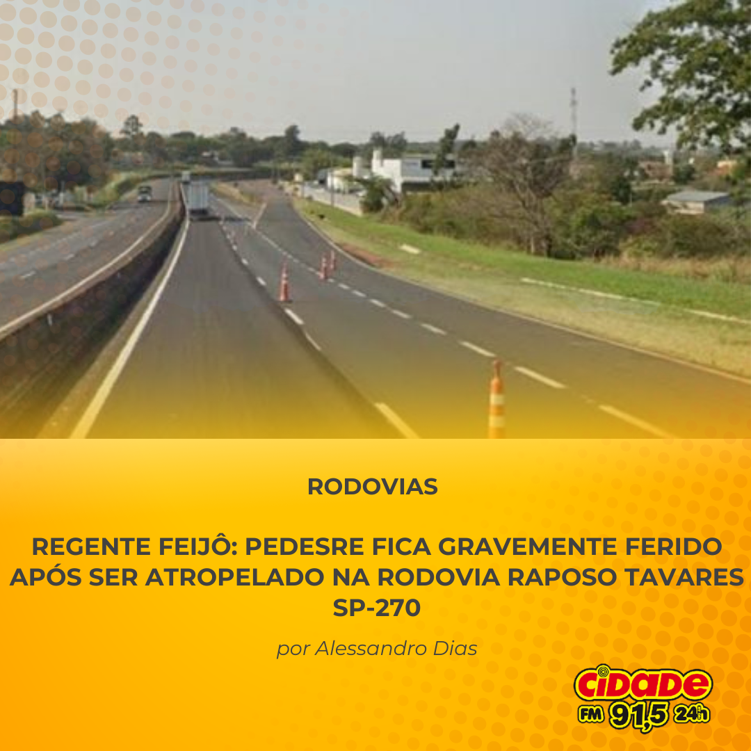 Geral REGENTE FEIJÓ: PEDESTRE FICA GRAVEMENTE FERIDO APÓS SER ATROPELADO NA RODOVIA RAPOSO TAVARES SP-270 29 de junho de 2024 Nenhum comentário