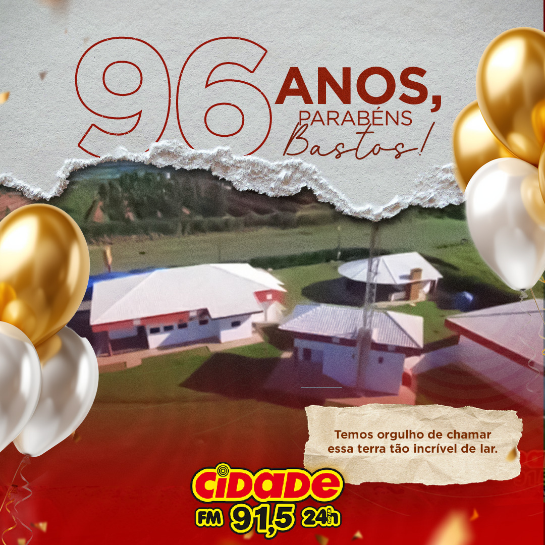Geral PARABÉNS BASTOS, NOSSO ORGULHO, NOSSA CIDADE AMADA; TERRA DO OVO E DA RÁDIO CIDADE FM!! 18 de junho de 2024 Nenhum comentário