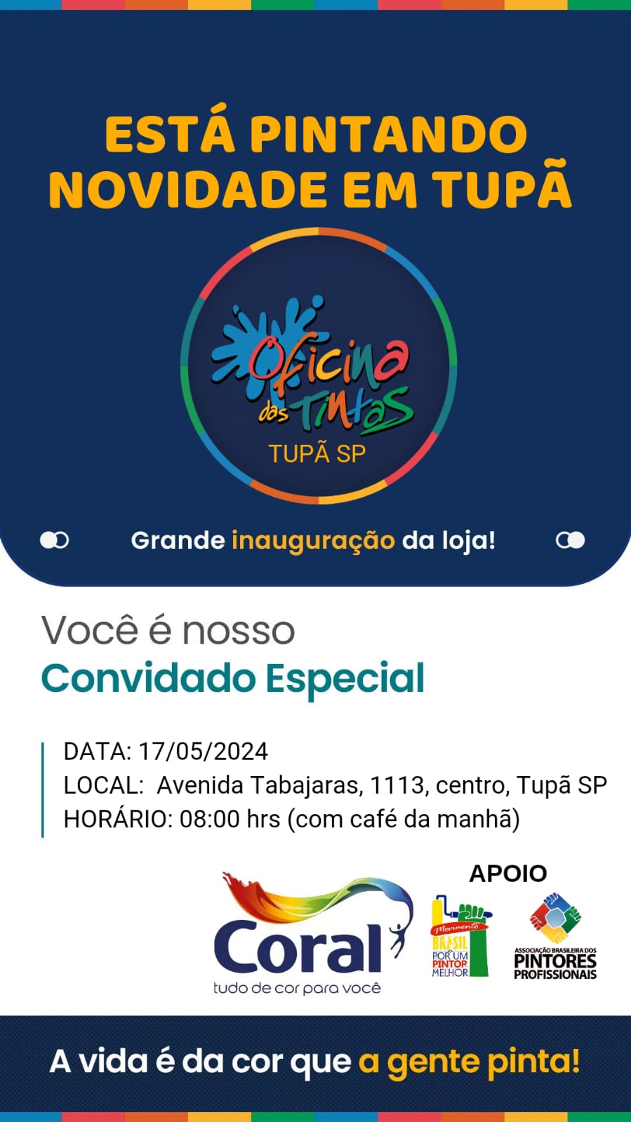 Geral ESTÁ CHEGANDO A HORA: GRANDE INAUGURAÇÃO DA OFICINA DAS TINTAS EM TUPÃ 16 de maio de 2024 Nenhum comentário