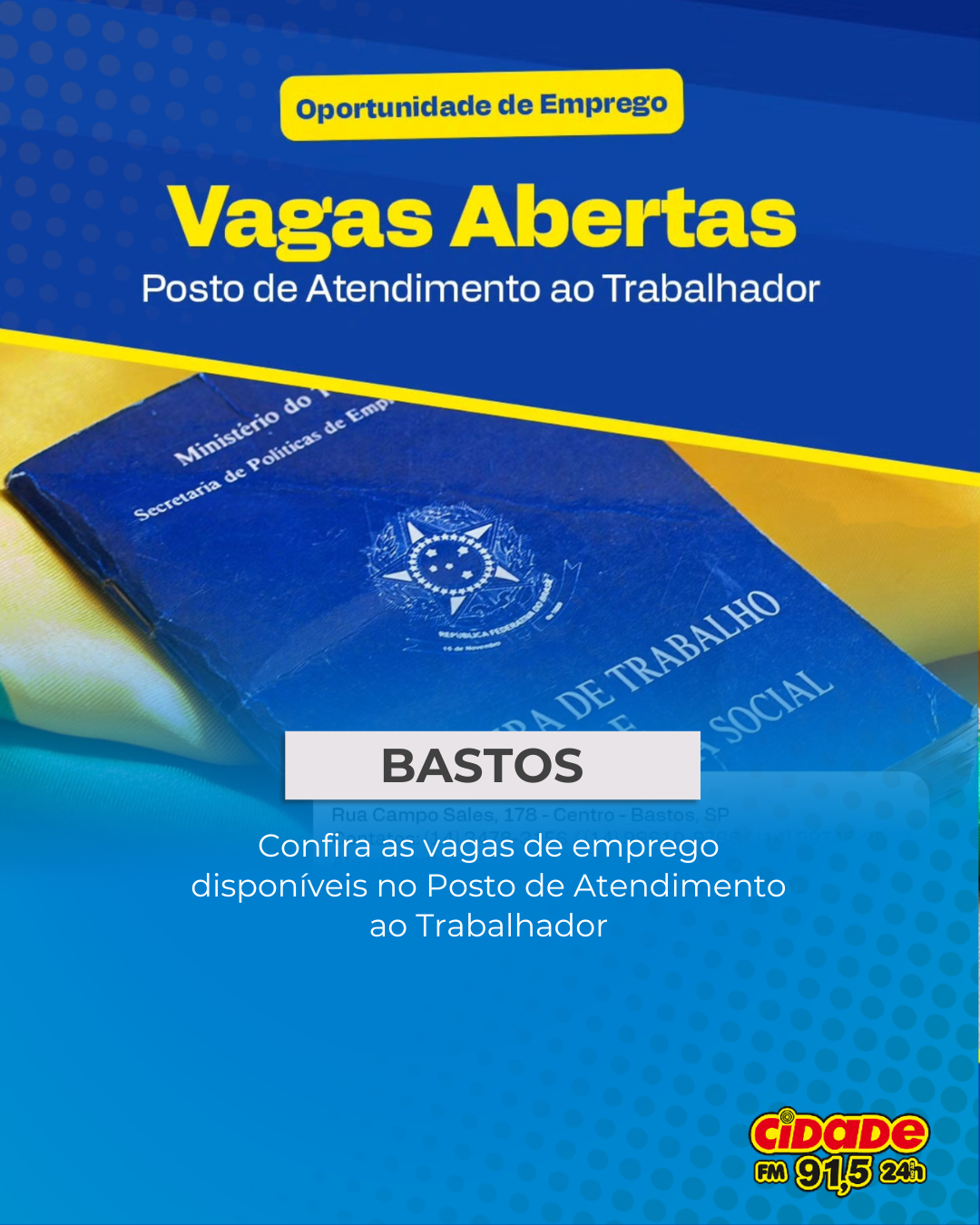 Geral BASTOS: Confira as vagas de emprego disponíveis no Posto de Atendimento ao Trabalhador 22 de dezembro de 2025 Nenhum comentário