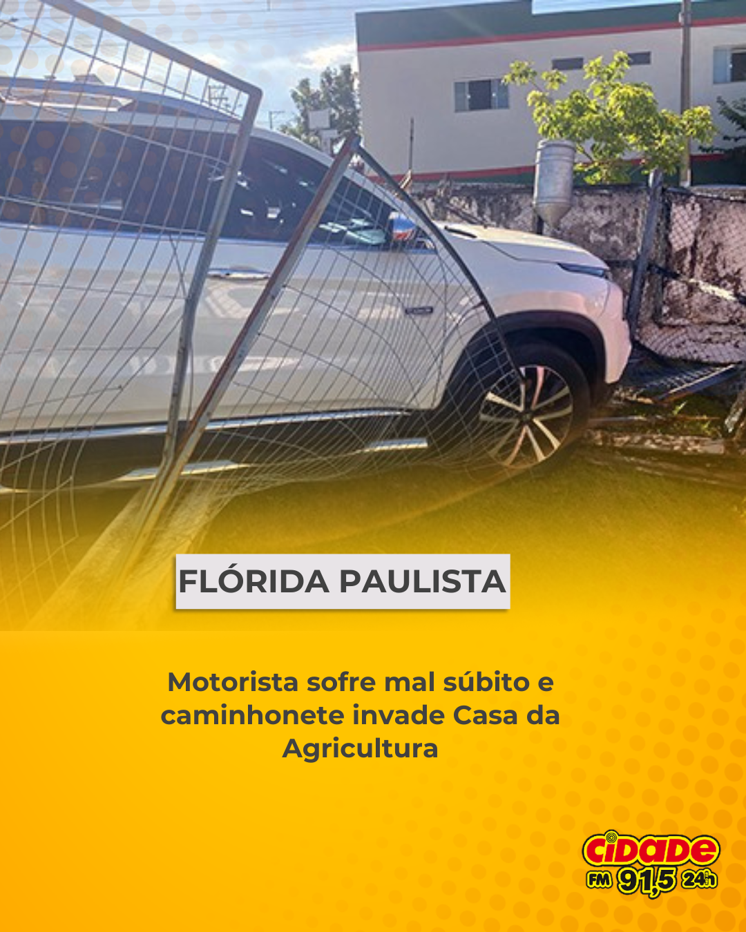 Geral FLÓRIDA PAULISTA: Motorista sofre mal súbito e caminhonete invade Casa da Agricultura 19 de dezembro de 2025 Nenhum comentário