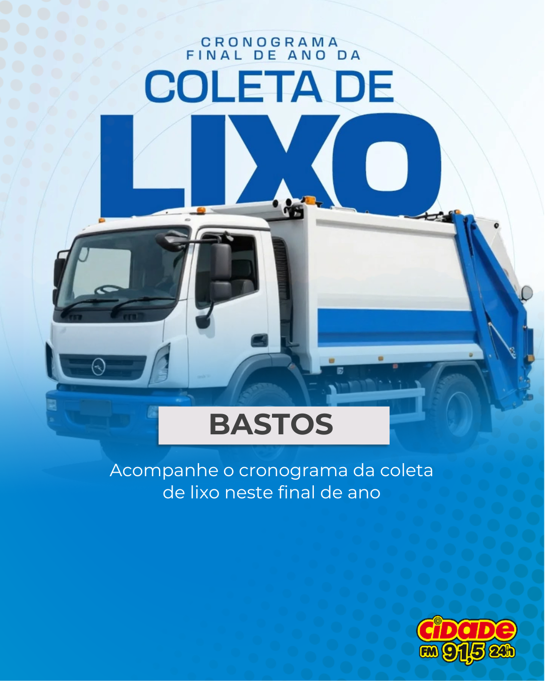 Geral BASTOS: Acompanhe o cronograma da coleta de lixo neste final de ano 18 de dezembro de 2025 Nenhum comentário
