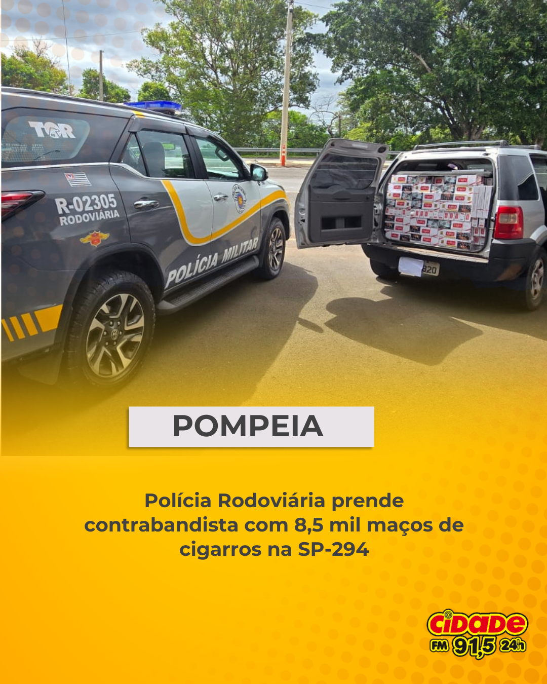 Geral POMPEIA: Polícia Rodoviária prende contrabandista com 8,5 mil maços de cigarros na SP-294 18 de dezembro de 2025 Nenhum comentário
