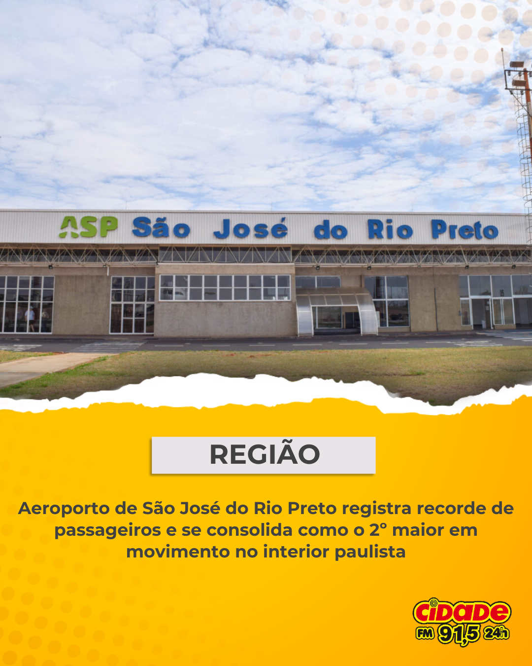 Geral REGIÃO: Aeroporto de São José do Rio Preto registra recorde de passageiros e se consolida como o 2º maior em movimento no interior paulista 18 de dezembro de 2025 Nenhum comentário