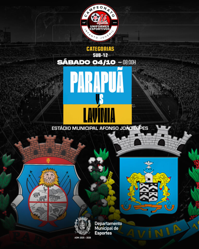 Parapuã, SP- Neste sábado (04/10), às 08h00, nossa equipe Sub-12 de Parapuã entra em campo para enfrentar Lavínia pelo Campeonato Olé Sports.