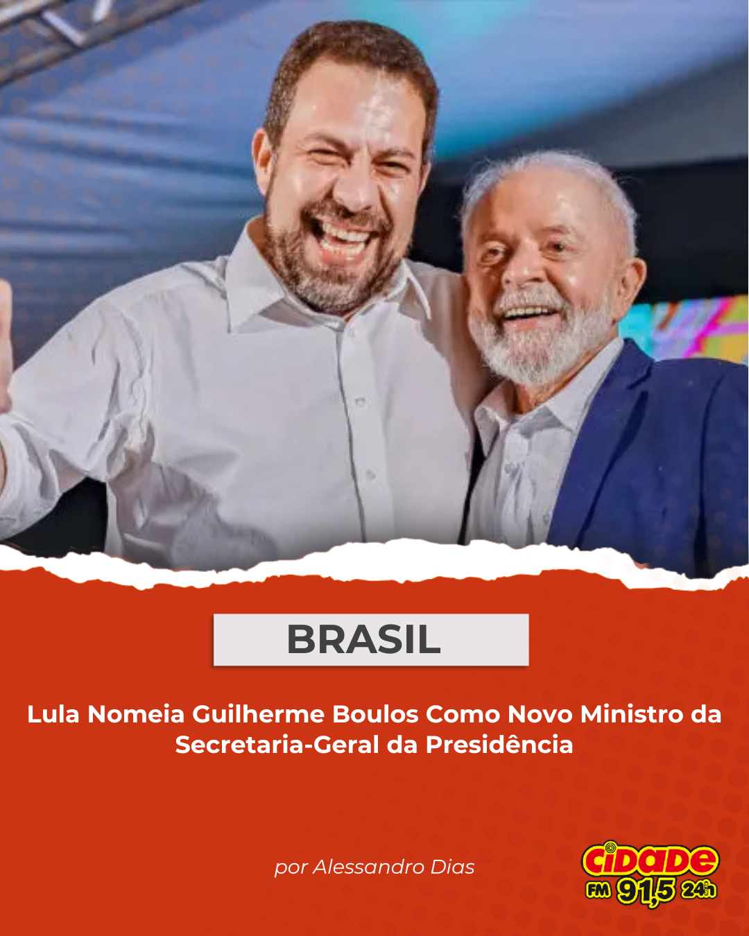 Da redação tupã, SP- O presidente Luiz Inácio Lula da Silva (PT) anunciou nesta segunda-feira (20) a nomeação do deputado federal Guilherme Boulos (PSOL-SP) como novo ministro da Secretaria-Geral da Presidência da República, responsável pela articulação do governo com os movimentos sociais.