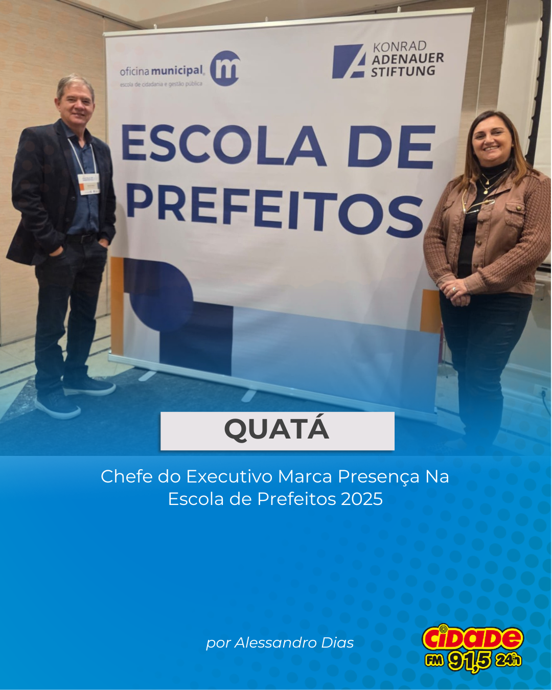 Quatá, SP- O Município de Campos do Jordão foi sede da “Escola de Prefeitos 2025”, realizada de 22 a 24 de outubro. O evento, promovido pela Oficina Municipal em parceria com a Fundação Konrad Adenauer (KAS-Brasil), teve como tema central “Gestão Pública Municipal: Consórcios Intermunicipais, Meio Ambiente e Educação”. O Prefeito de Quatá Marcio Bidoia, acompanhado da Esposa Claudia Pagianotto Bidoia, marcou presença no encontro nacional que reuniu lideranças municipais de diversas regiões do país.