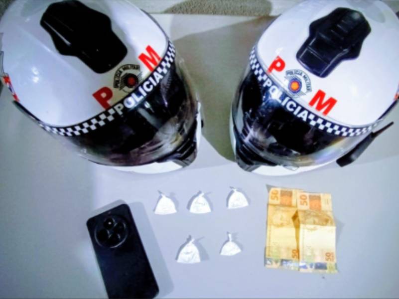 Com ele, foram apreendidas cinco porções de cocaína, R$ 100 em dinheiro, um celular e uma motocicleta Honda/Fan 160. O caso foi encaminhado à Polícia Civil para as providências legais.