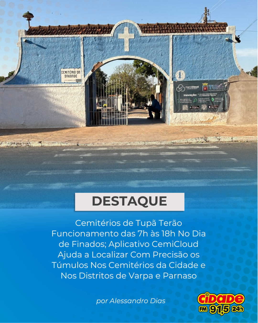 Tupã, SP- A Prefeitura informa que, em razão do Dia de Finados, neste domingo (2), os cemitérios do município e dos distritos estarão abertos das 7h às 18h. O horário especial visa oferecer mais comodidade aos visitantes que irão prestar homenagens aos entes queridos.