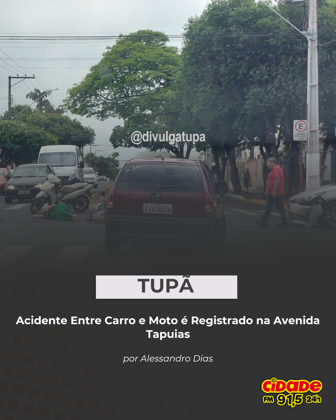 Tupã, SP- Um acidente envolvendo uma motocicleta e um Toyota Corolla foi registrado na manhã desta quinta-feira (30) na Avenida Tapuias, próximo à Escola Helena Pavanelli, em Tupã.
