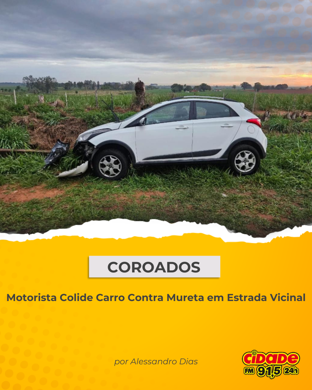 Coroados, SP- Uma mulher ficou ferida após perder o controle do carro e bater em uma mureta de concreto na madrugada desta quarta-feira (29), na vicinal Nicola Barbieri, zona rural de Coroados.