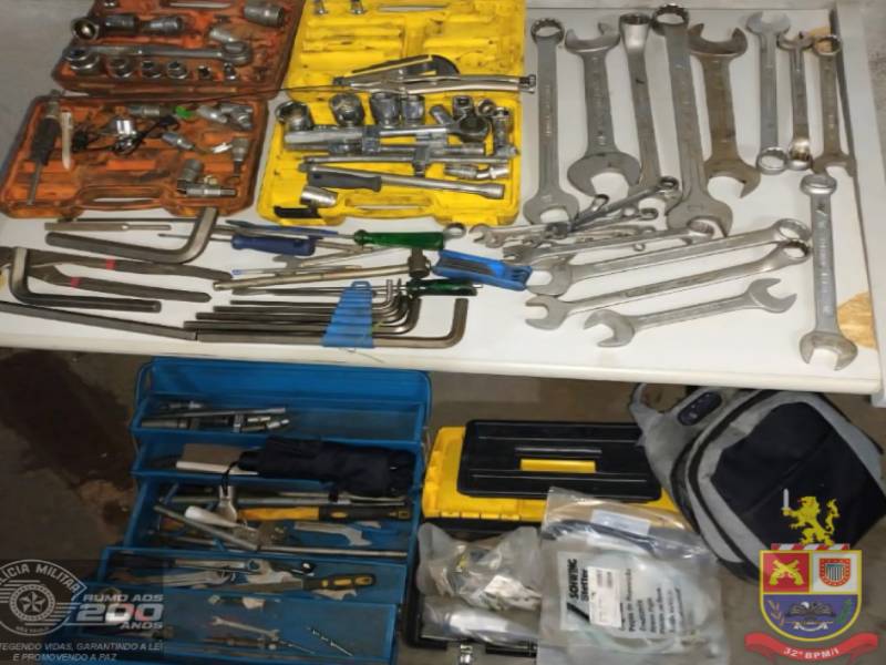 Em seguida, a equipe localizou mais caixas escondidas, totalizando cerca de R$ 7 mil em ferramentas e equipamentos de reparo de motores. A vítima reconheceu os itens, e o autor foi conduzido à delegacia, onde permaneceu à disposição da Justiça.