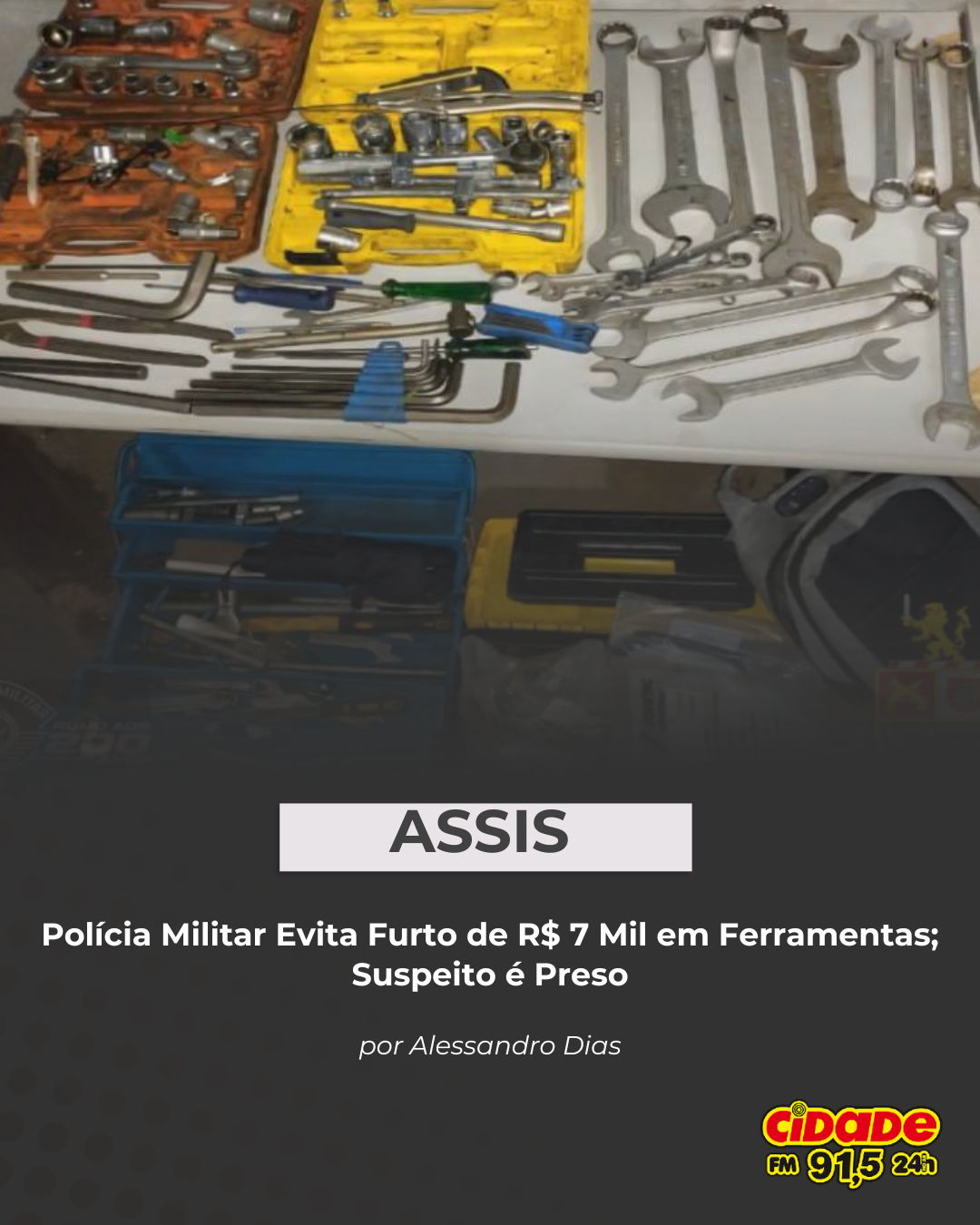Assis, SP- Um homem de 22 anos foi preso na madrugada desta quarta-feira (29) após furtar ferramentas de um veículo estacionado no Hotel Santa Rosa, em Assis. Durante patrulhamento pelo centro da cidade, policiais do 32º BPM/I abordaram o suspeito, que carregava uma mochila cheia de objetos furtados.