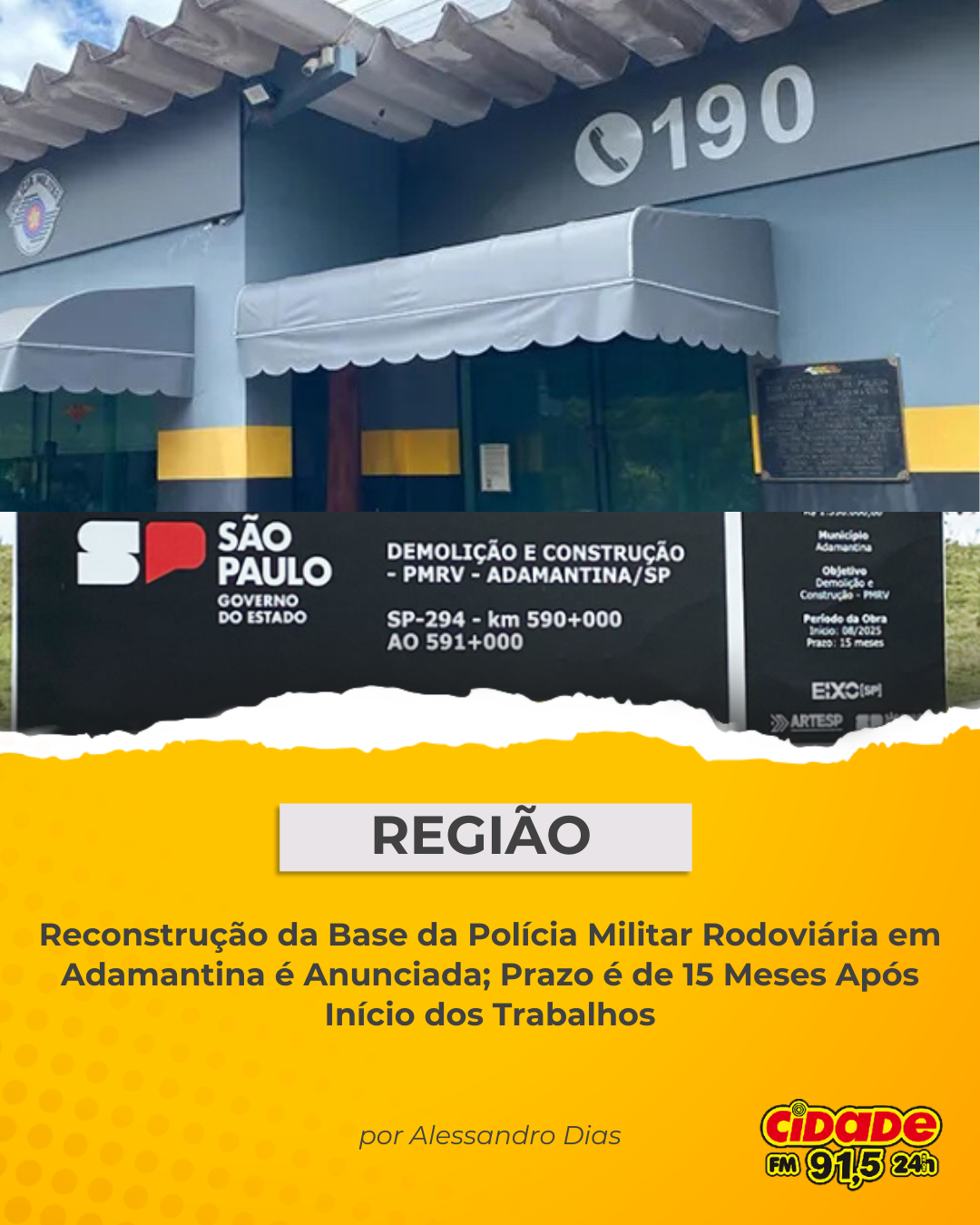 Adamantina, SP- O Governo do Estado de São Paulo confirmou a demolição e reconstrução da Base da Polícia Militar Rodoviária de Adamantina, localizada na Rodovia Comandante João Ribeiro de Barros (SP-294). O investimento será de R$ 1,35 milhão, com supervisão da ARTESP e execução da concessionária Eixo SP.