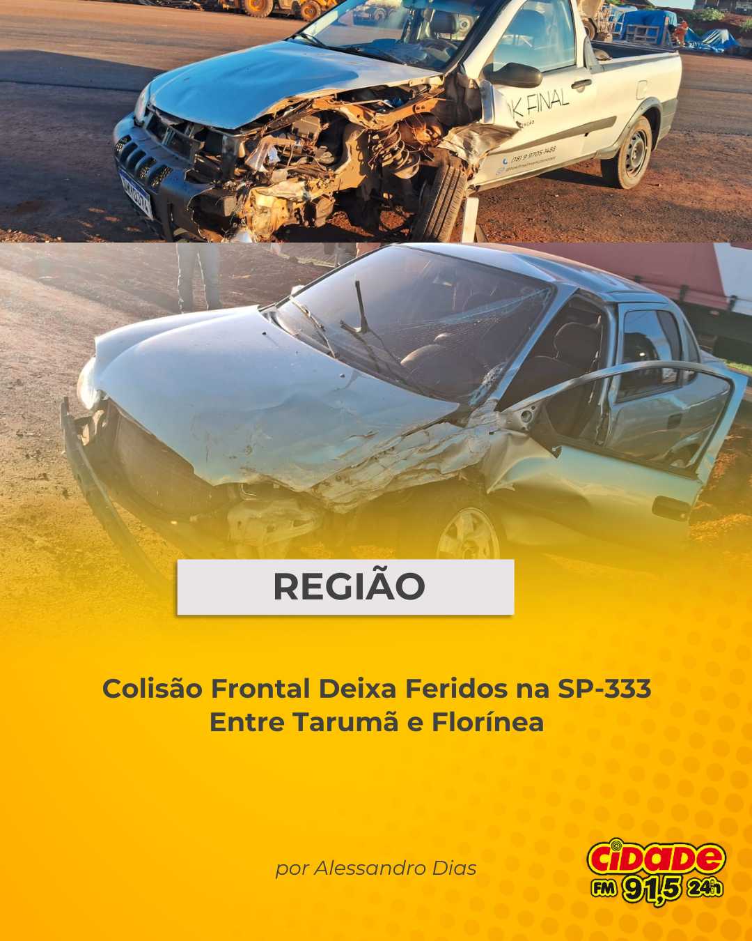 Tarumã, SP- Um grave acidente foi registrado na tarde desta sexta-feira (31) na Rodovia Miguel Jubran (SP-333), entre Tarumã e Florínea, na região de Assis. De acordo com as primeiras informações, uma picape Fiat Strada colidiu frontalmente com um GM Classic por motivos ainda desconhecidos.