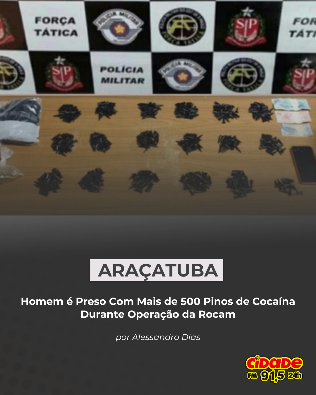 Na sequência, os policiais foram até a residência do homem, onde localizaram mais 516 pinos de cocaína prontos para comercialização. Ele foi levado ao Plantão Policial de Araçatuba, onde teve a prisão ratificada e permanece à disposição da Justiça.
